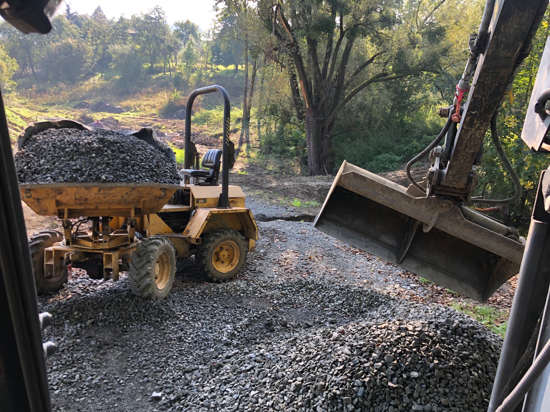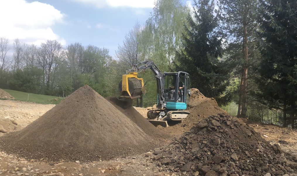 Prosévací lžíce, vrták na sloupky, rozrývací trn pro likvidaci kořenů, přidržovací drapák, rotační laser pro měření rovin a sklonů, přijímač paprsku přímo na rameni bagru pro přesné výškové vedení lopaty, hutnící technika, atd.